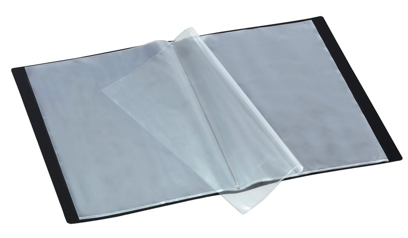 Med etikettficka på framsidan. Både omslag och fickor i slitstark, syrafri och kopiesäker PP-folie.