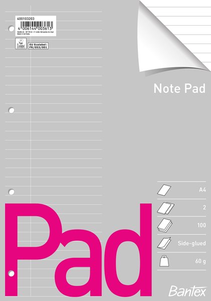 Online katalog » Anteckningsböcker och block » Block » Limmade » Bantex » A4 - Sidlimmat » Bantex standardblock, A4, linjerat, EU-hålat 2-pack, sidlimmat