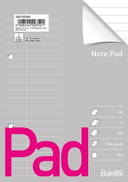 Online katalog » Anteckningsböcker och block » Block » Limmade » Bantex » A5 - Sidlimmat » Bantex standardblock A5, linjerat, EU-hålat 2-pack, sidlimmat