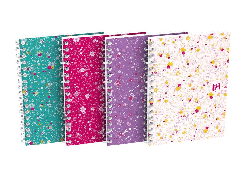 Online katalog » Anteckningsböcker och block » Anteckningsböcker/block » Spiralinbundna » Oxford Floral - Soft cover » OXFORD Floral A6 anteckningsbok med Dubbel spiralbindning, Mjukt kartongomslag, 5 mm Rutor, 100 sidor, Blandade färger