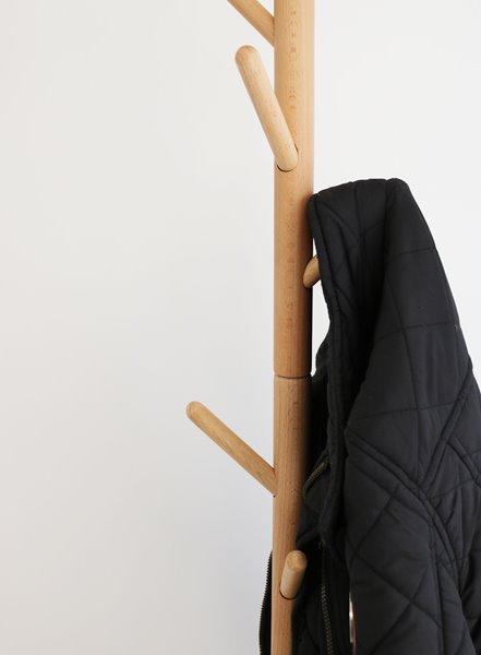 Mikado har ett modernt skandinaviskt uttryck och rundade krokar som gör den både funktionell och dekorativ i alla miljöer. Den rejäla konstruktionen och foten med tre ben gör den stabil och enkel att flytta. Tillverkad av bok från hållbart skogsbruk.(176 cm)